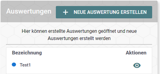 Die erstellten Auswertungen erscheinen nach erfolgreicher Erstellung in der Liste. Sie können die gewünschte Auswertung mit einem Klick auf das Augensymbol öffnen.