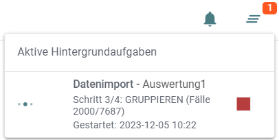 Ein Klick auf die 3 horizontalen Linien öffnet die aktiven Hintergrundaufgaben. Hier sehen Sie den Fortschritt des Imports.