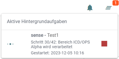 Ein Klick auf die 3 horizontalen Linien öffnet die aktiven Hintergrundaufgaben. Hier sehen Sie den Fortschritt der Erstellung.