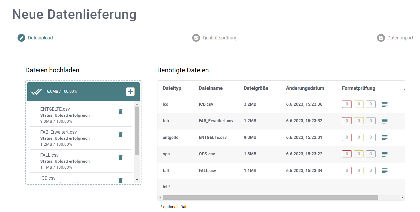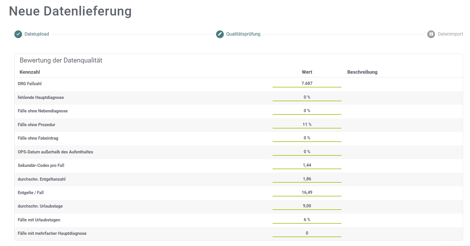 Nachdem die Dateien erfolgreich hochgeladen und die Formatsprüfung abgeschlossen wurde, folgt der nächste wichtige Schritt im Prozess: die Bewertung der Datenqualität.