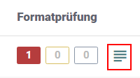 Um die Übersicht der Formatprüfung aufzurufen, navigieren Sie bitte zum Symbol mit den horizontalen Linien, das auch als "Hamburger-Menü" bekannt ist, und klicken Sie darauf.