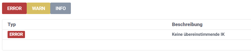 Um die Anzeige der Bereiche "Error", "Warnungen" oder "Informationen" in der Übersicht der Formatprüfung zu steuern, können Sie im oberen Teil der Benutzeroberfläche die entsprechenden Tabs anwählen. Jeder Tab repräsentiert einen dieser drei Bereiche. Durch das Anklicken eines Tabs schalten Sie die Anzeige für den entsprechenden Bereich ein oder aus.