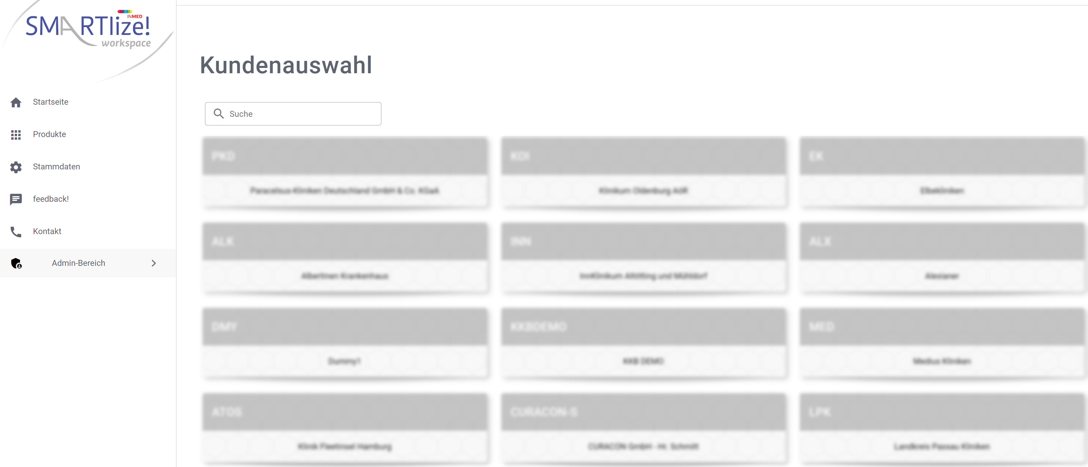 Der Kunde bzw. das Haus für die Datenlieferung oder Erstellung wird an dieser Stelle ausgewählt. Danach erfolgt die Aktionsauswahl für den gewählten Kunden.