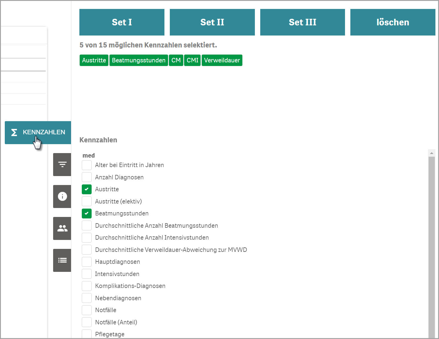 Durch die Nutzung der Kennzahlen-Registerkarte besteht die Möglichkeit, das Berichtsblatt um bis zu zehn Kennzahlen zu erweitern. Auf diese Weise lässt sich das Berichtsblatt individuell im Hinblick auf diesen Bereich anpassen. Die Kennzahlen können mit einem einfachen Mausklick ein- oder ausgeblendet werden.