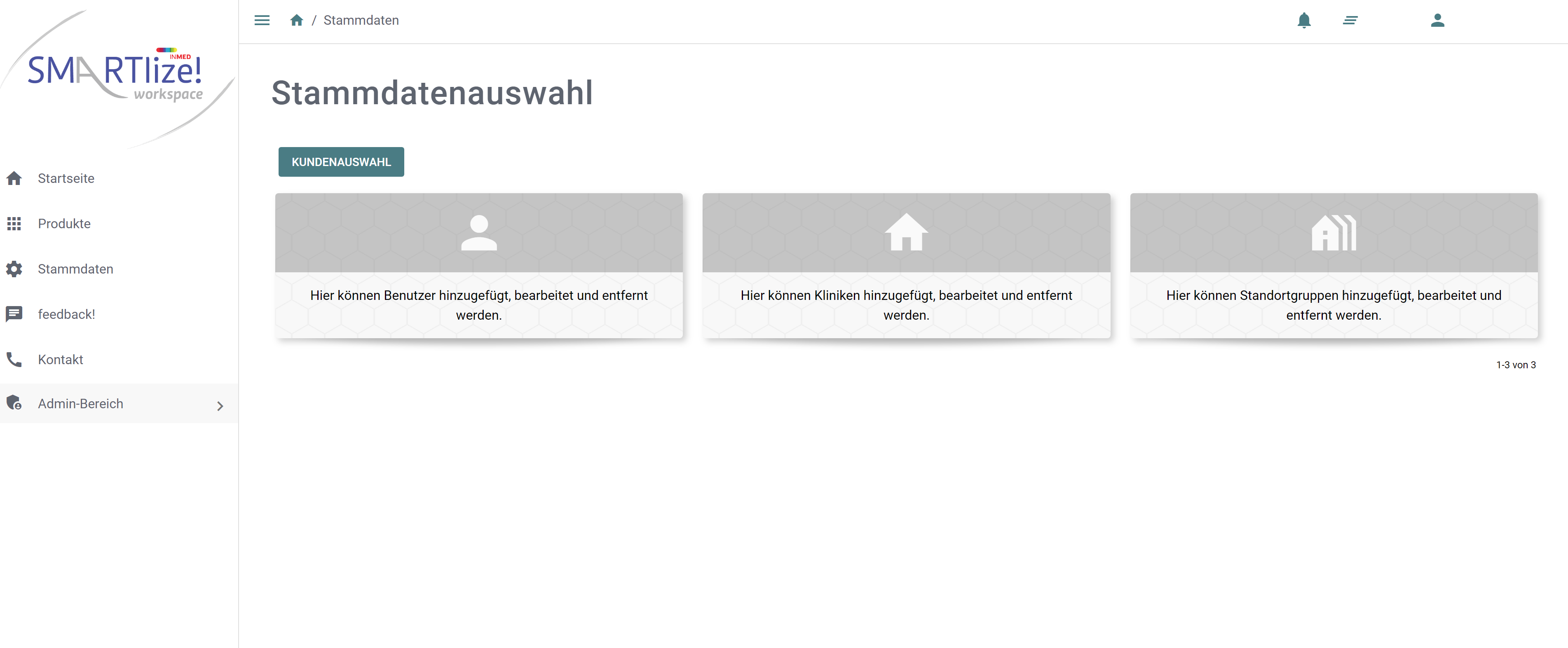 Bitte beachten, dass als Kundenadministrator diese Verwaltungsfunktion für alle Kliniken des Kunden verfügbar ist, während der Klinikadministrator die Verwaltungsfunktion nur für diejenigen Kliniken mit Administrationsrechten ausüben kann.